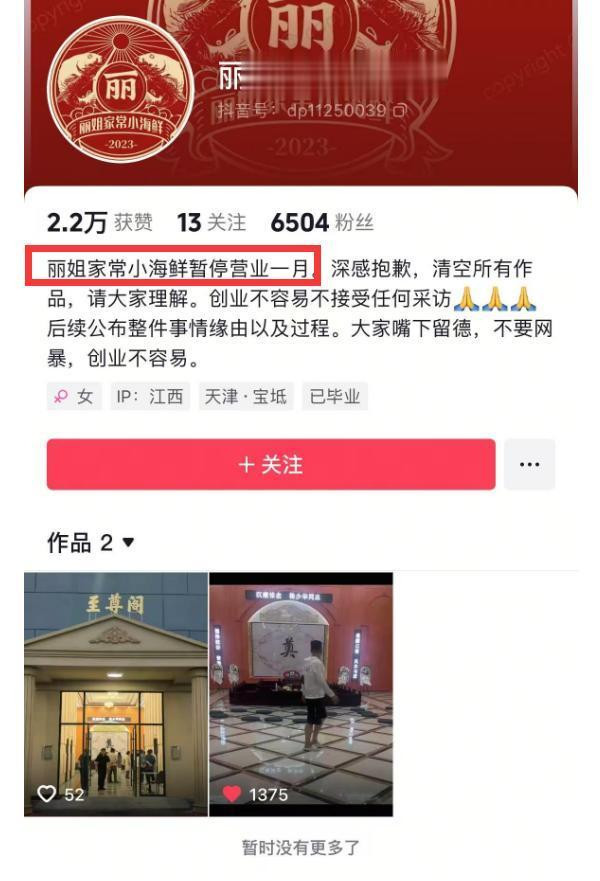 老板本人赶紧在社交平台上发布了声明,表示将暂停营业一个月,清空所有作品,并表示希望大家理解,创业不容易,呼吁大家停止恶意指责。